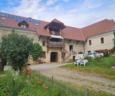 Chambre très spacieuse, avec WC et salle de bain séparés. Lits en 180x200 (King size), pouvant êtres séparés en 2 lits 90x200.